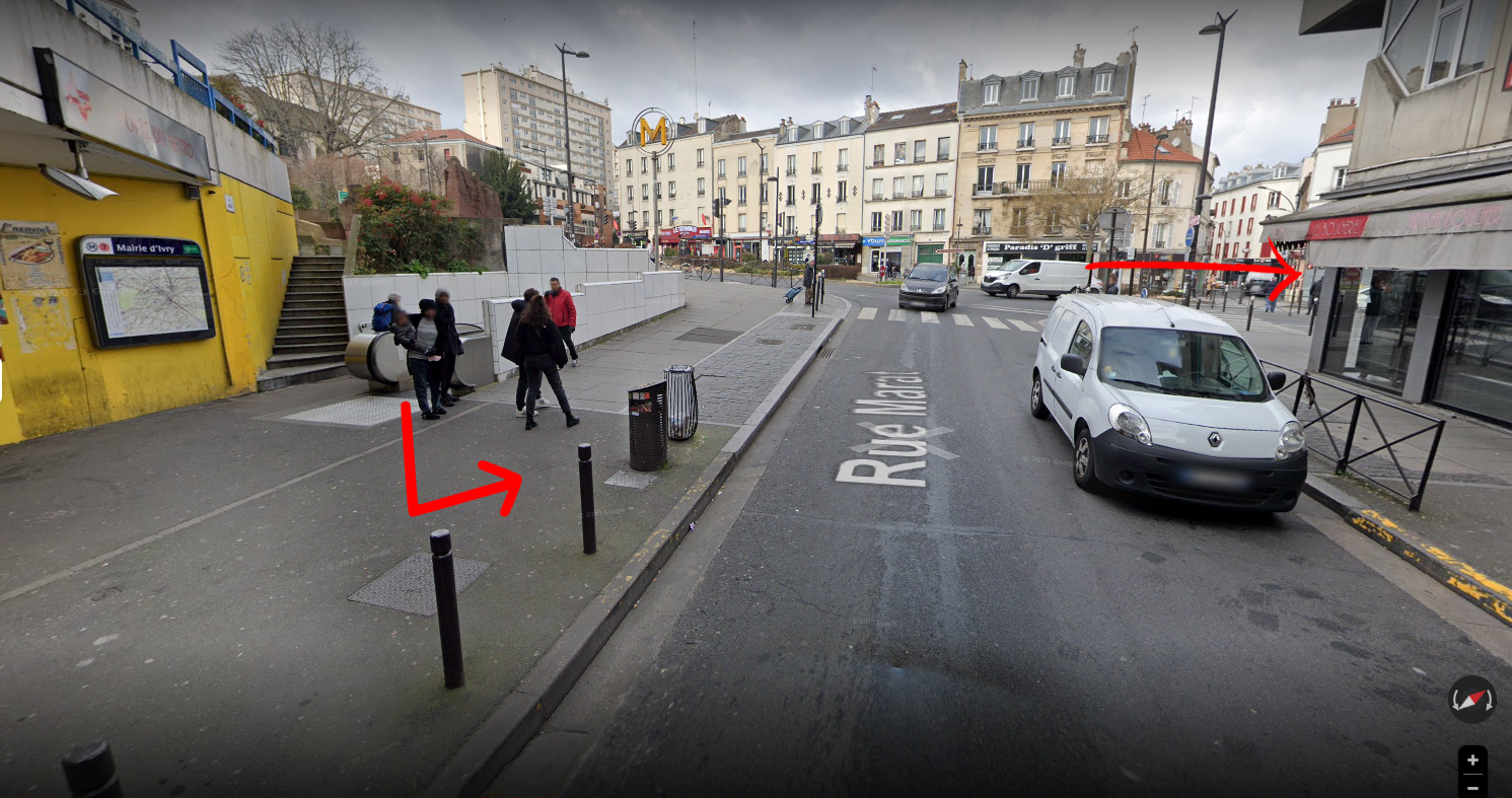 une fois sorti du métro, tourner à gauche, traverser le passage piéton et prendre l'avenue georges gosnat en direction de la mairie